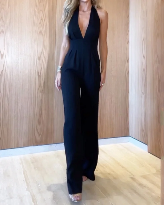 Combinaison décontractée sans manches à col en V de couleur unie