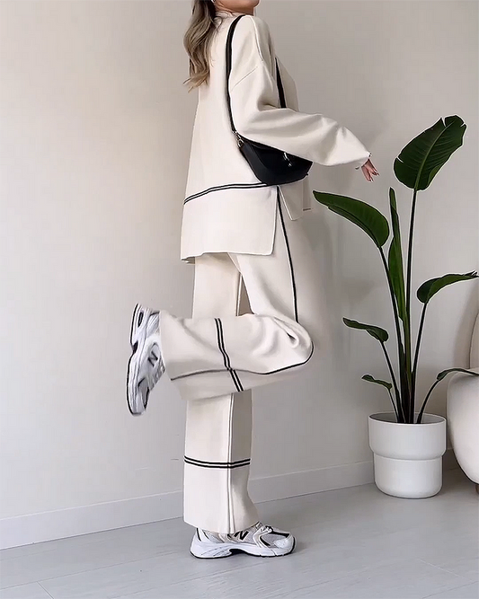 Ensemble deux pièces avec pull décontracté et décontracté de couleur unie