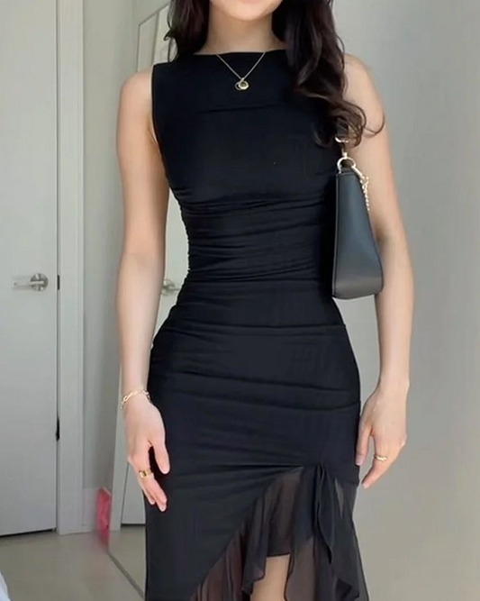 Vestido casual sin mangas con volantes